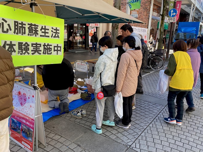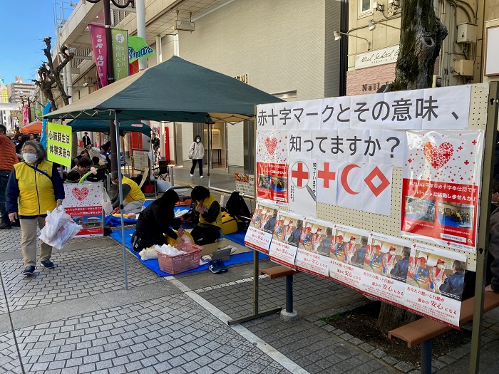 参加2年目の「ひらつな祭」!今年は3種の赤十字マークをお知らせしながら、「心肺蘇生法とAED体験」ブースを出展し、大人40名、子ども31名の計71名の方に、いざという時のための知識と技術をお伝えしました。また、今年は初めてステージで「心肺蘇生法とAEDのデモンストレーション」も実施しました!平塚市赤十字奉仕団はこれからも様々な場所で赤十字の健康・安全活動を普及していきます。