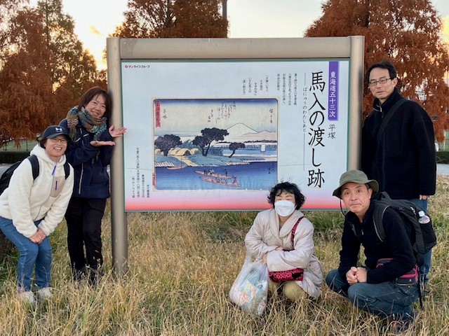 晴天の下、馬入のお花畑や馬入の渡しなど、改めて平塚の魅力も堪能できた歩行訓練でした。