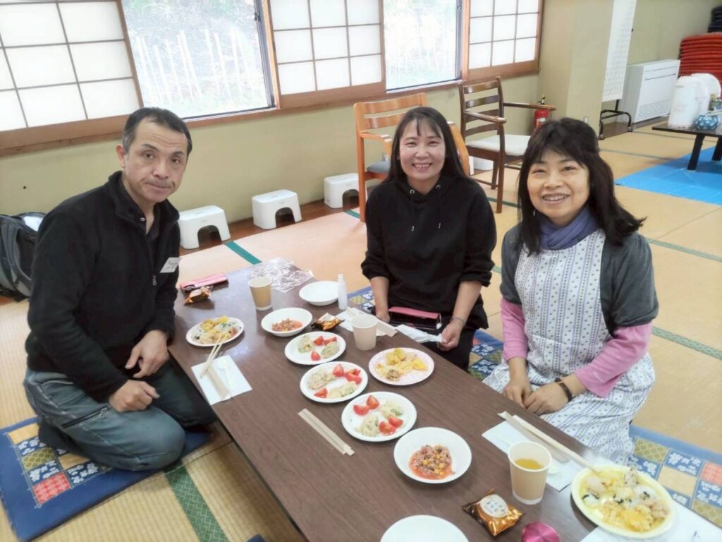 防災食作り体験では、災害時に持ち寄られた食材を想定して、全8種類のメニューが完成し、各団の活動発表など情報交換に続いて、参加者で昼食を楽しみました。