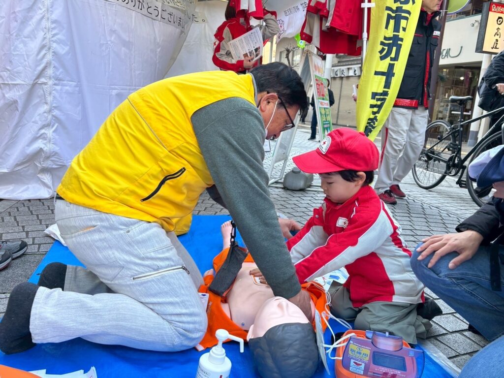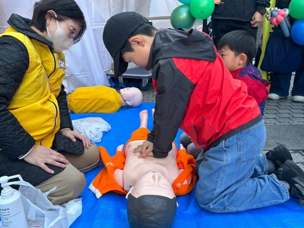 今年度は、赤十字魚釣りクイズコーナー、心肺蘇生法とAEDの体験コーナーを実施しました。