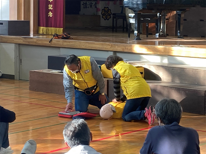 - 心肺蘇生法とAEDの使い方についてのデモンストレーション展示と体験コーナーの開催